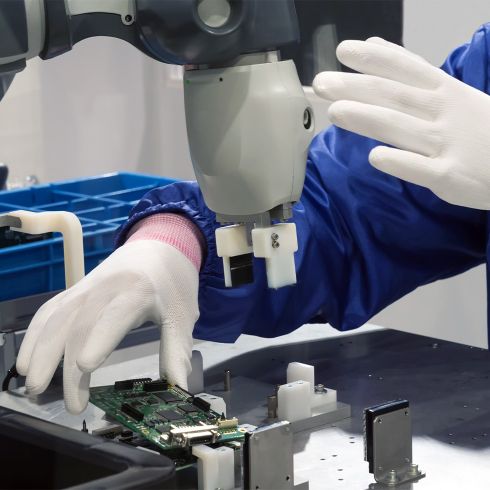 Über eine kollaborative Montage spricht man, wenn eine Arbeitskraft mit einer Maschine im gleichen Arbeitsraum zusammen arbeitet und sich die Handlungen der beiden überschneiden.