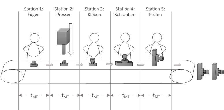 Die Taktzeit wird auf Montagestraßen insbesondere bei der Stationsaufteilung und Austaktung benötigt.