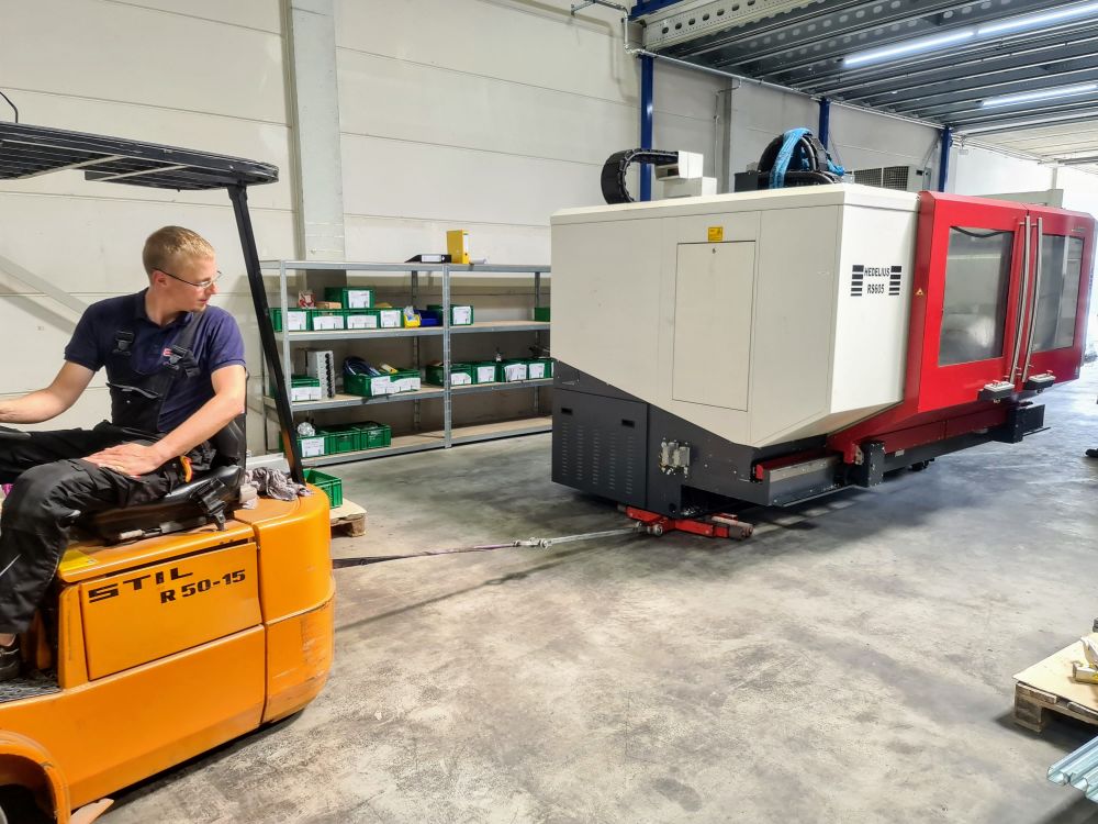 Wie sieht es aus, wenn mehrere Tonnen schwere, industrielle CNC-Fräsen umziehen? Sehen Sie selbst.